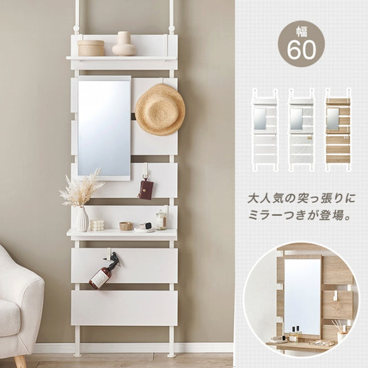 ミラー付き 突っ張りラック KTR-3217 幅60cm 奥行き21.5cm 高さ200~265cm