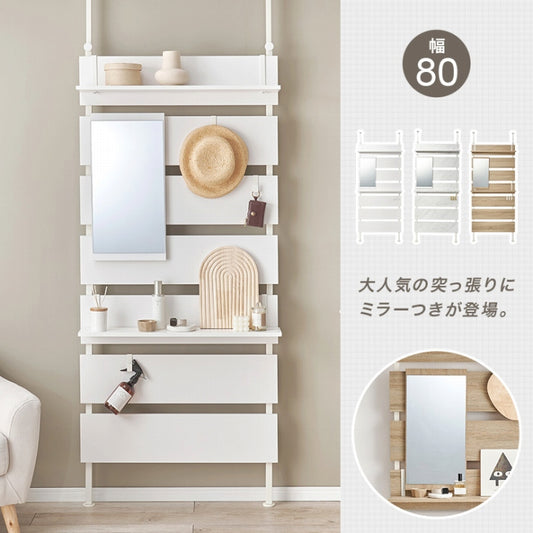 ミラー付き 突っ張りラック KTR-3218 幅80cm 奥行き21.5cm 高さ200~265cm