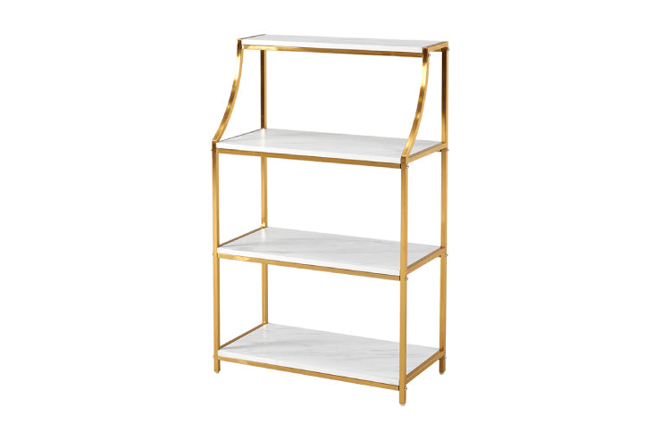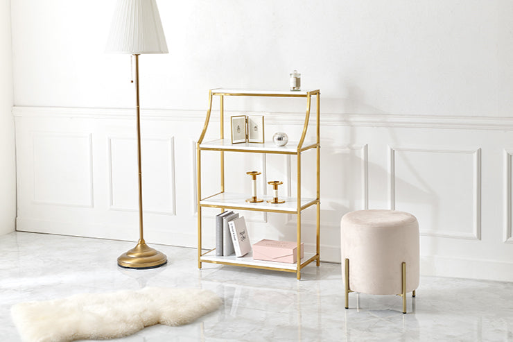 A 5-tier tension rack with shelves that can be adjusted to any height for neat storage.