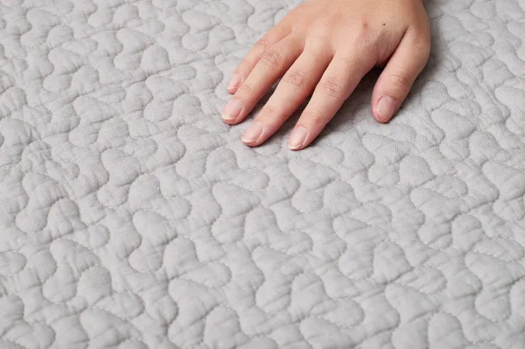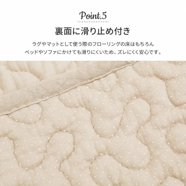 コットン100%で赤ちゃんの肌にもやさしく、中綿が入ったキルティング生地でふわっとやわらかな肌ざわり。