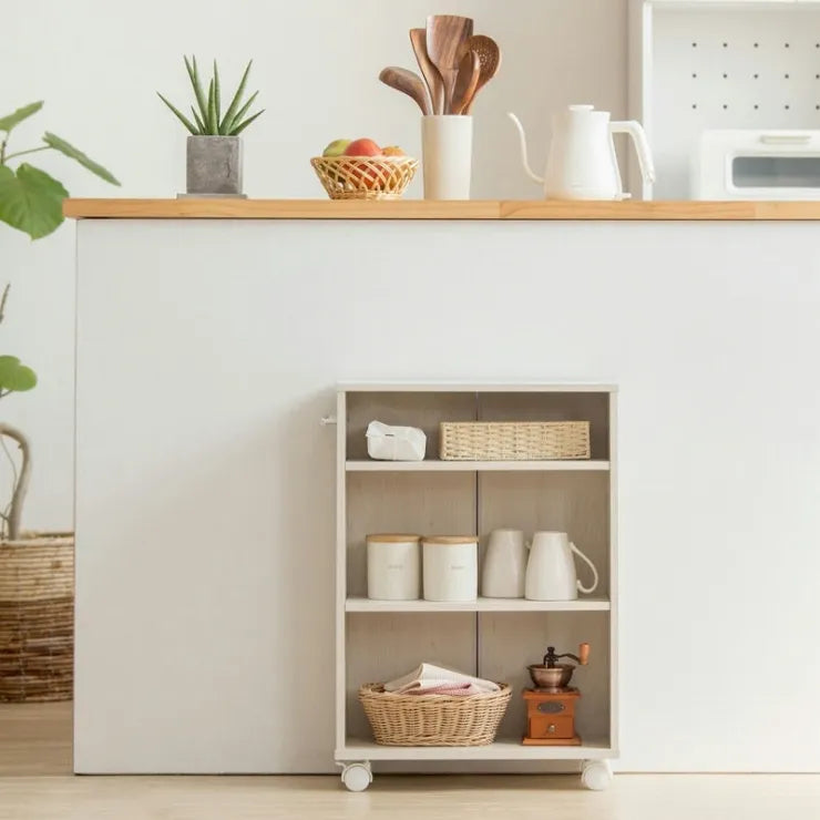 キャスター付き 背面化粧仕上げ マルチラック 可動棚 食器棚 キッチンラック オープンラック 本棚 ラック オープン収納 キッチン収納 スリム すき間収納 木目調 シンプル おしゃれ かわいい 韓国インテリア 北欧