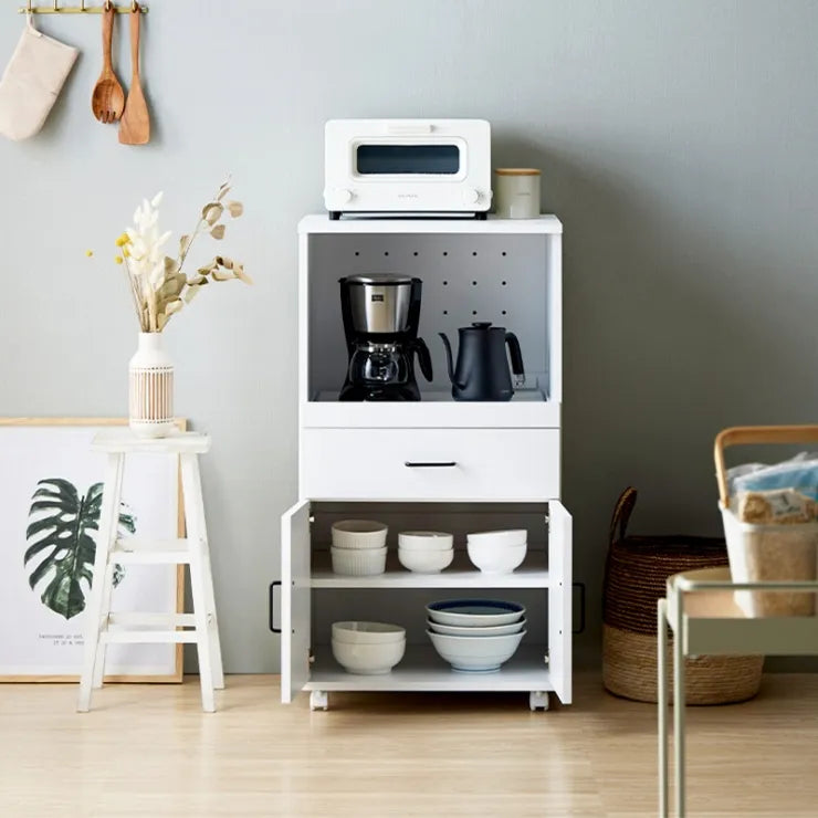 キャスター付き コンセント付き レンジラック 食器棚 スライド棚 引出し付き キッチンラック オープンラック レンジ台 棚 オープン収納 キッチン収納 スリム すき間収納 シンプル おしゃれ かわいい 韓国インテリア 北欧