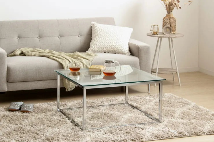 異素材×直線美で整える、正方形ガラステーブル