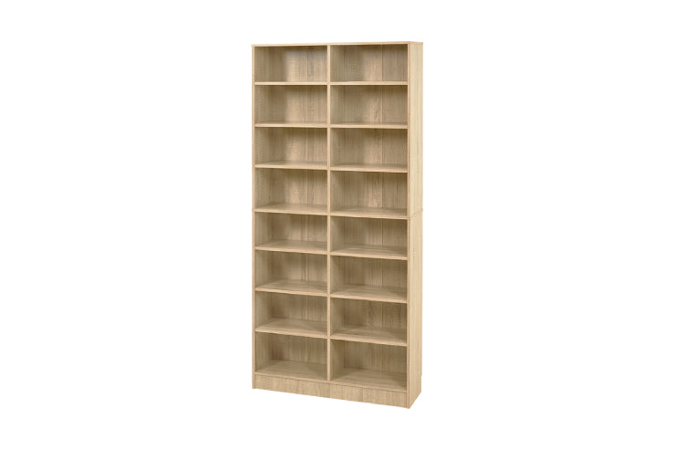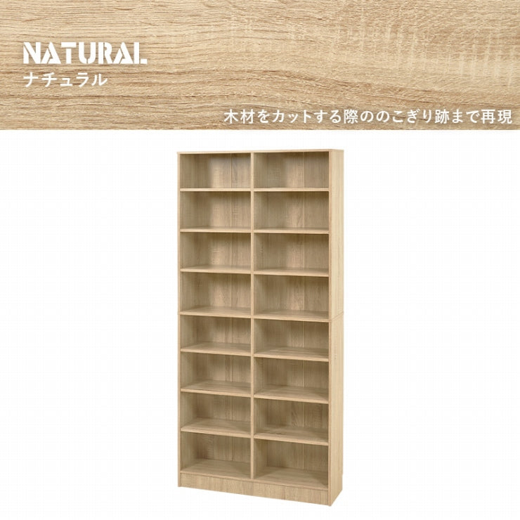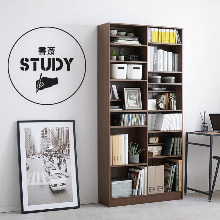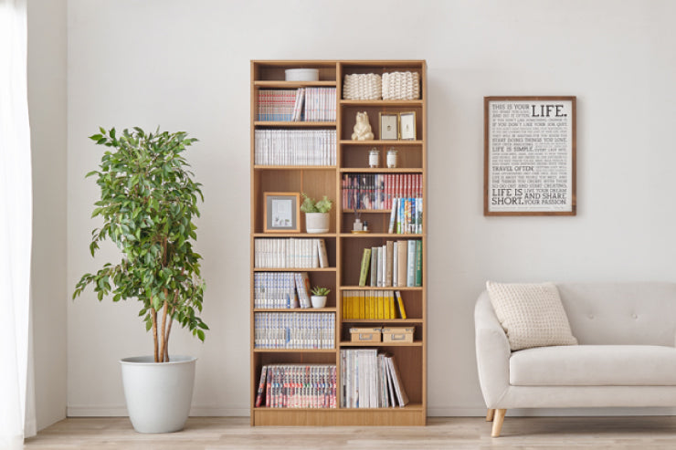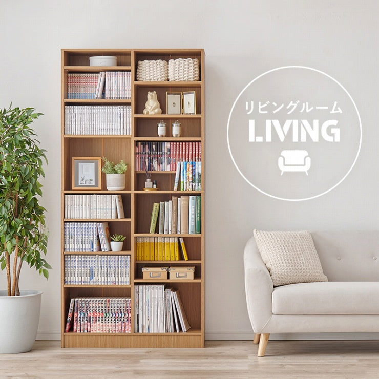 前後2列別々に棚板高さが変えられ、大容量収納できるマンガ好きの為の本棚。