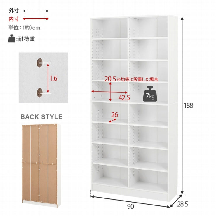 ブックシェルフ VKB-7271 幅90cm 奥行き28.5cm 高さ188cm