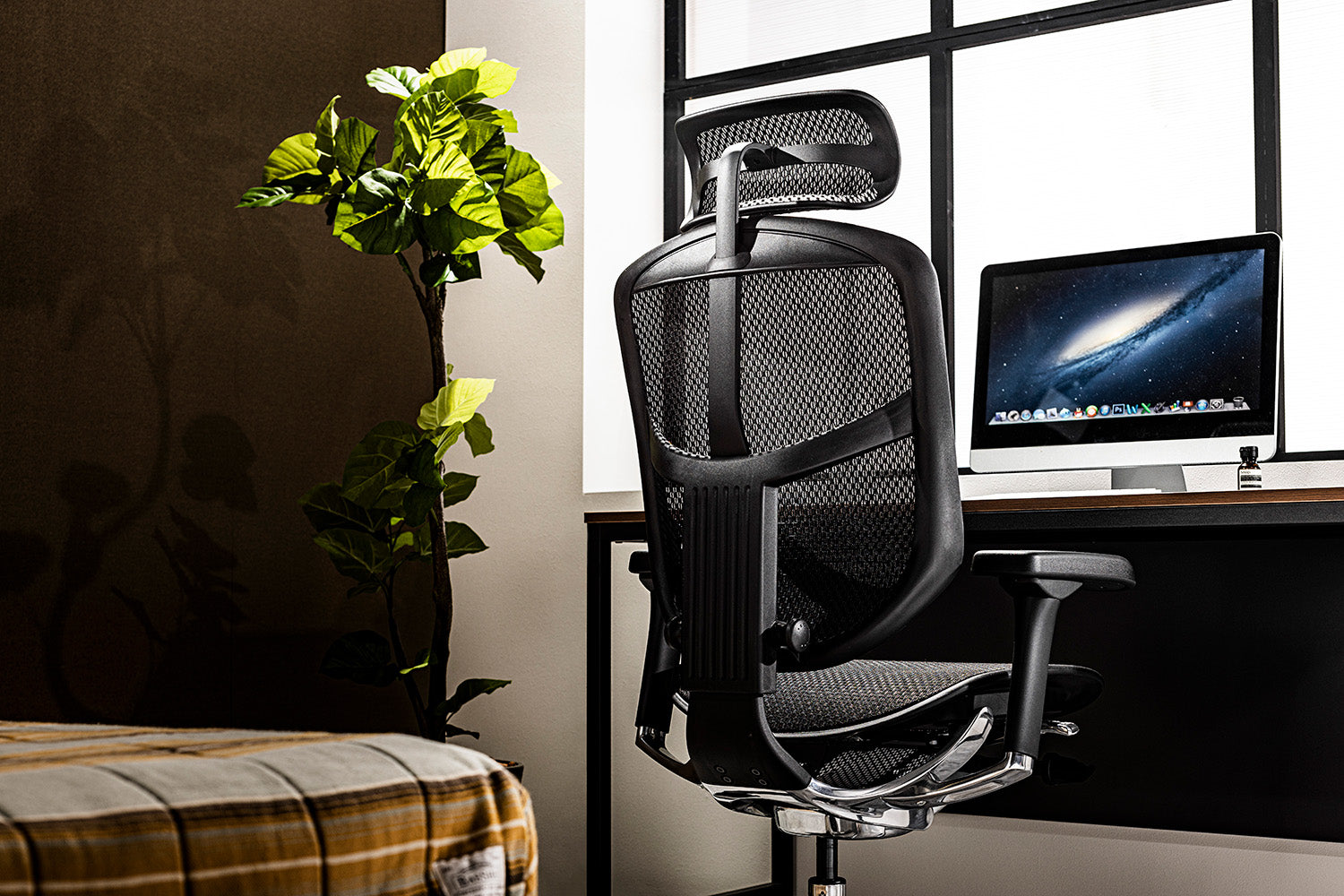 エルゴヒューマンのエントリーモデルである「エンジョイ」シリーズは、エルゴヒューマンの基本機能を搭載し、ゆるやかな曲線を基調とするすっきりとしたシャープなデザインが魅力です。着座したときに背中全体をランバーサポート一体型のバックレストが支えてくれる、デスクワークをする全ての方にお勧めのチェアです。高さ、角度を調節できるヘッドレスト付属で、さらに快適に。