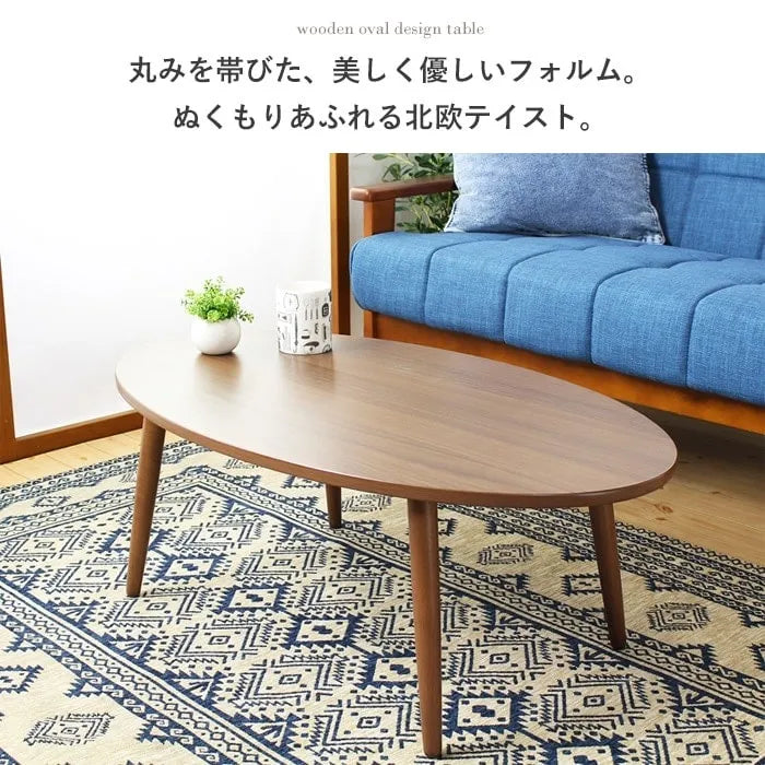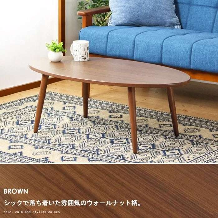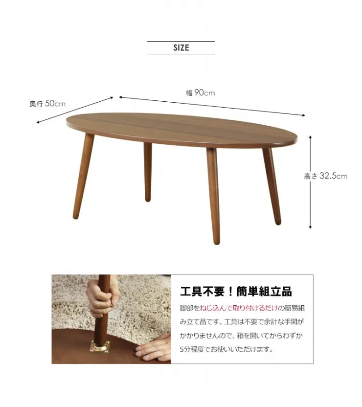リビングテーブル IW-202B 幅90cm 奥行き50cm 高さ32.5cm 天然木 ちゃぶ台 センターテーブル 木目調 円形テーブル 丸型 ウッドテーブル 机 コンパクト テーブル ローテーブル 楕円形テーブル オーバル型 収納 木 デスク リビング ダイニング おしゃれ かわいい 新生活 北欧