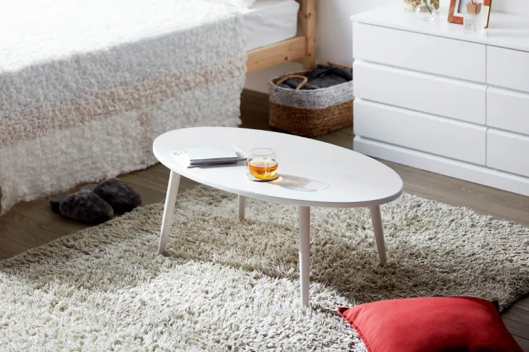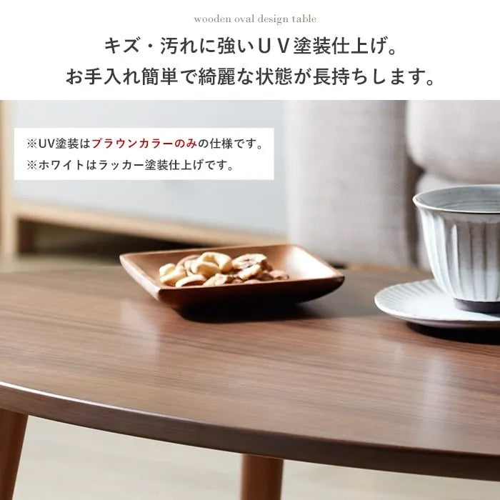 おしゃれでかわいいオーバルデザインの木製リビングテーブル