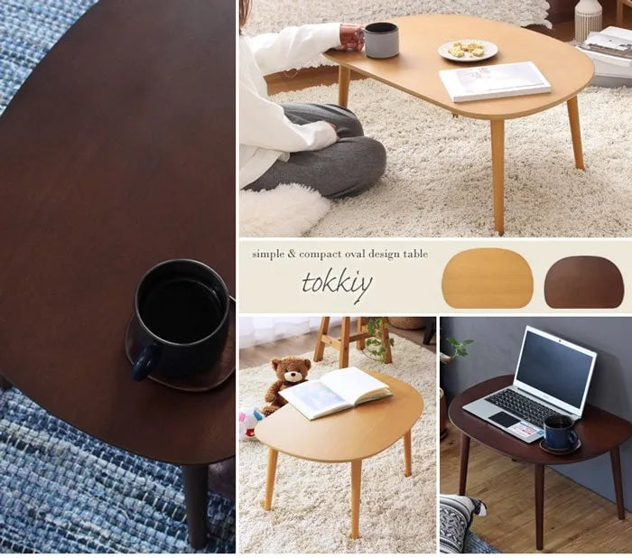 ローテーブル IW-3010 幅60cm 奥行き40cm 高さ32cm 天然木 ちゃぶ台 センターテーブル 木目調 円形テーブル 丸型 ウッドテーブル 机 コンパクト テーブル ローテーブル 楕円形テーブル オーバル型 収納 木 デスク リビング ダイニング おしゃれ かわいい 新生活 北欧