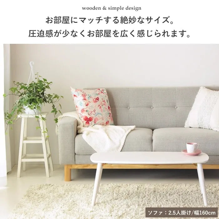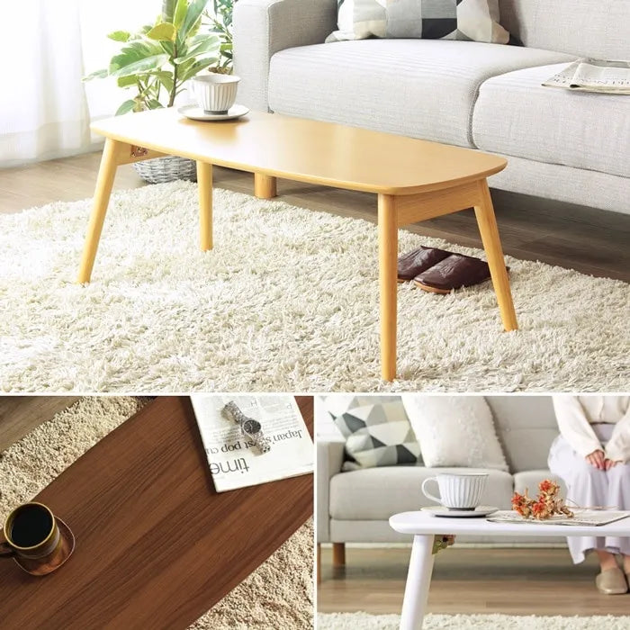 温もりを感じる木の風合いが魅力の折り畳みテーブル「シュシュ」は、リアルな木目のデザインでお部屋にぬくもりを与えます。北欧テイストの丸いフォルムが優しい印象を持ち、天板サイズは90×40cmで圧迫感がなく、ソファの前やフロアライフにも適しています。脚部は折り畳み式で、移動も簡単です。カラーはホワイト、ナチュラル、ブラウンの3色から選べ、お部屋に合わせたコーディネートが可能です。