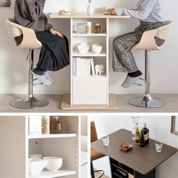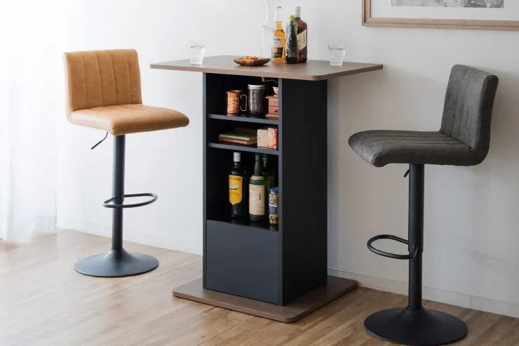 天板下には棚の位置を自由に変更できるオープンラックと、食品などが入れられる引き出しがありバーテーブルで使うものを色々収納できて使い勝手もバツグン。
