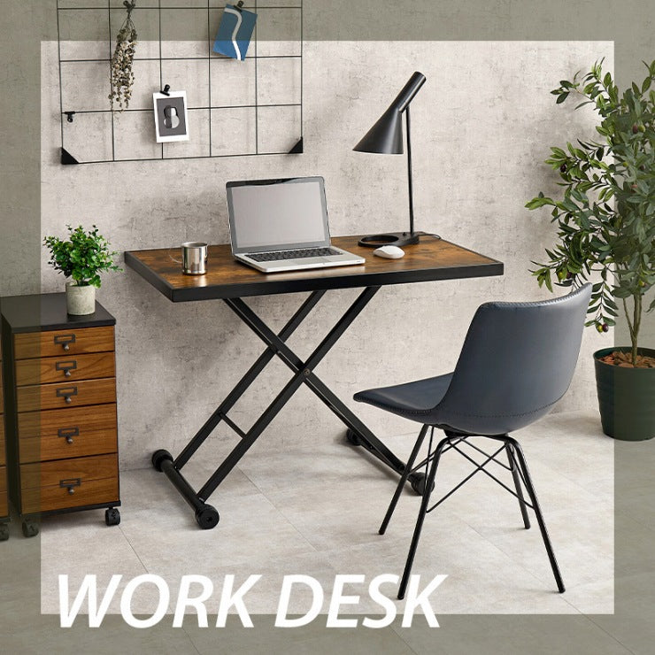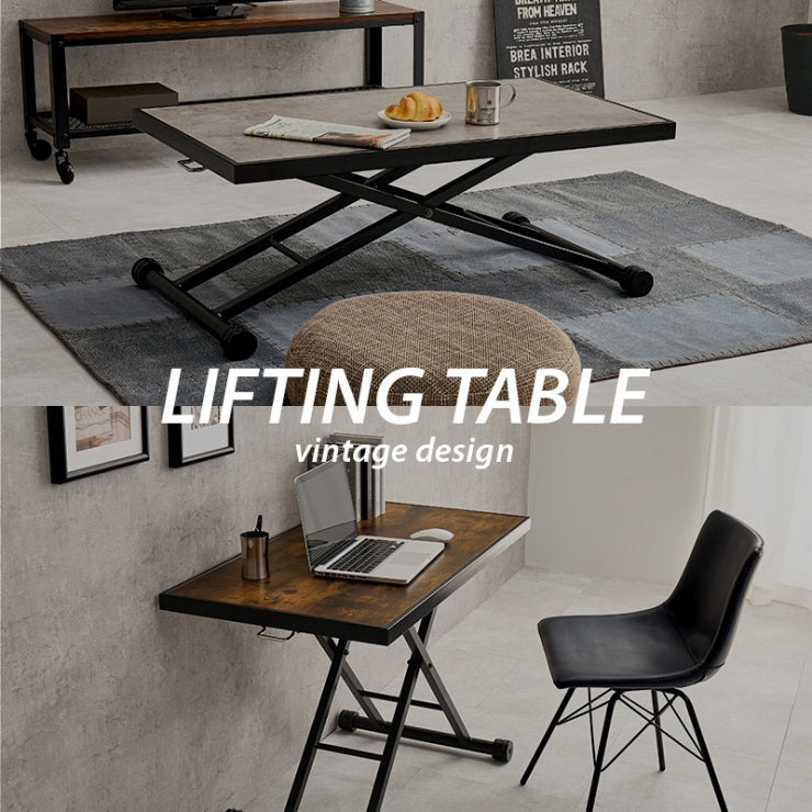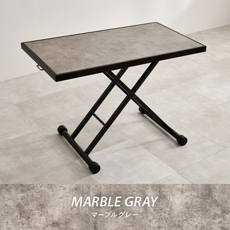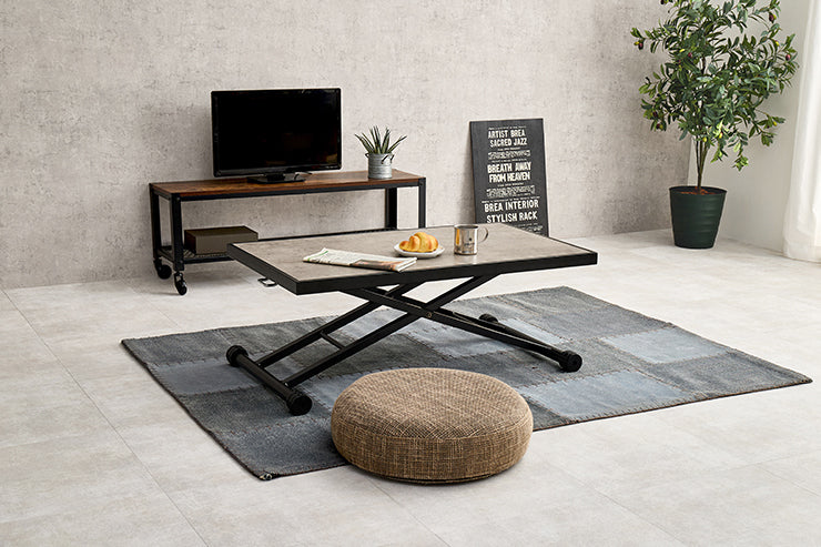 ガス圧式なので無段階で天板高さを調整できる昇降テーブル。素材感をリアルに再現した天板は、スチールの黒縁で存在感のあるデザインに。完成品なので届いた日からすぐに使用可能です。