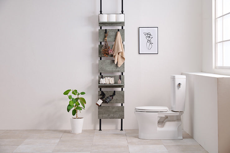 お部屋のいろいろな場所に設置できる突っ張り式ラック。パーテーションや間仕切りとしても活躍します。