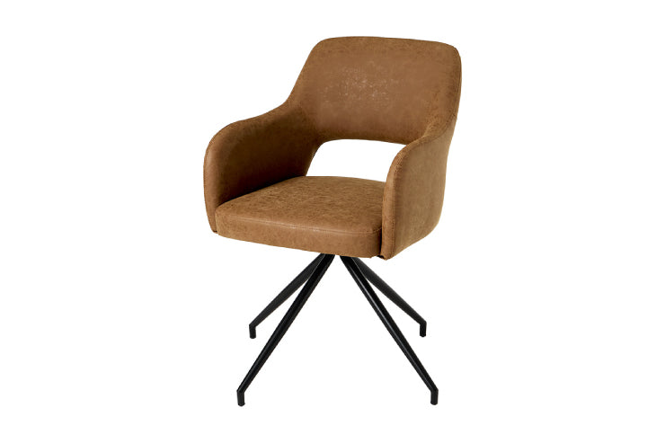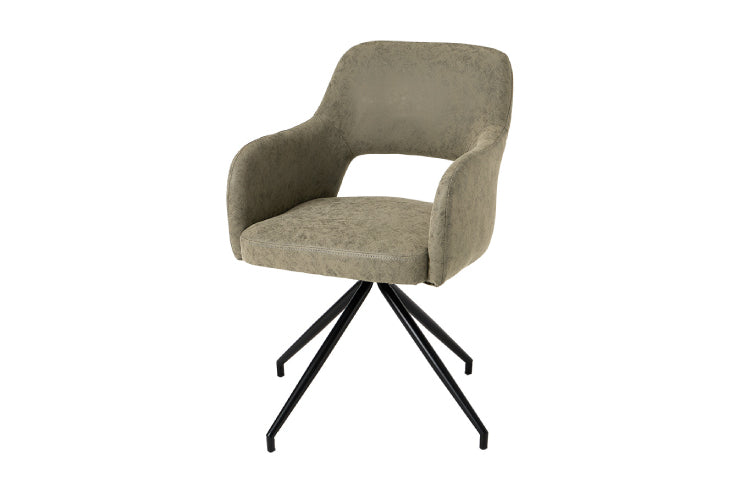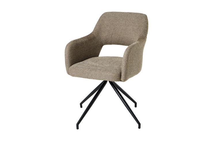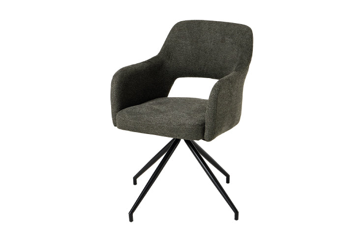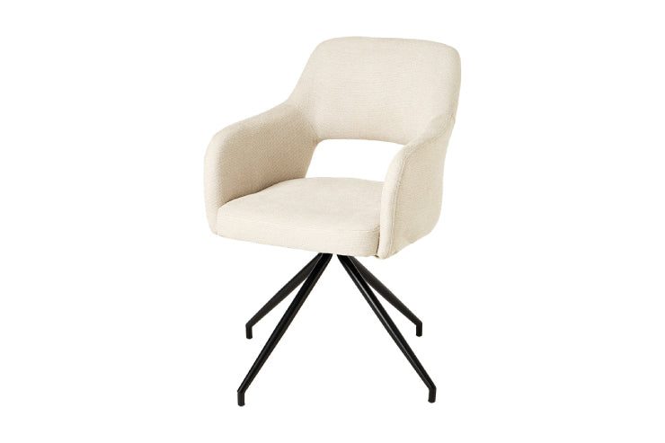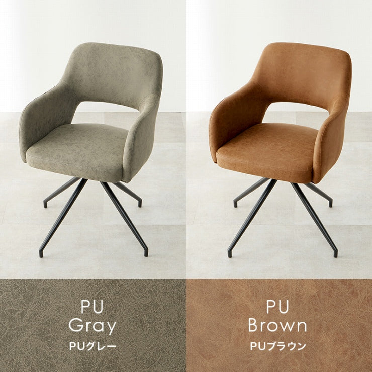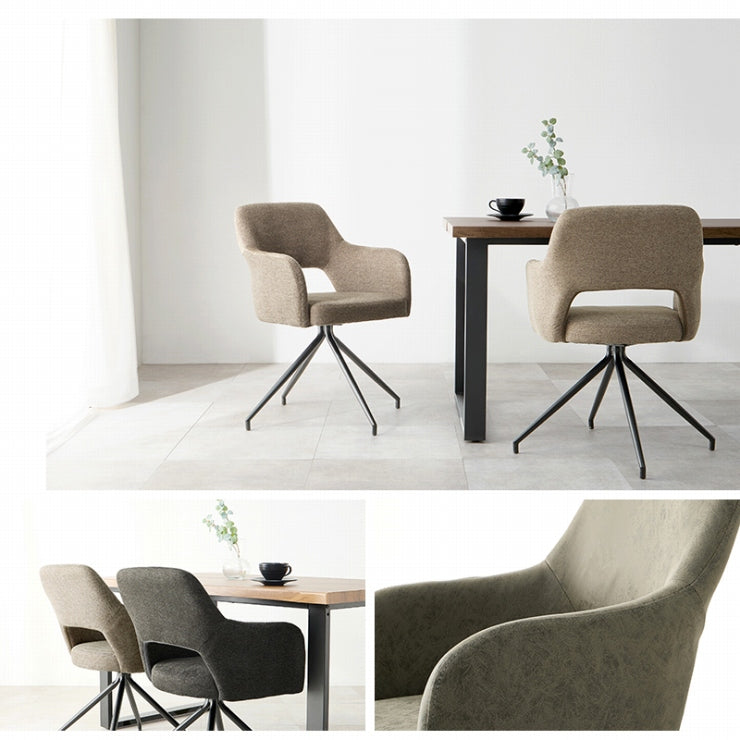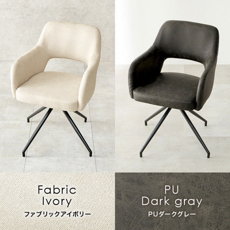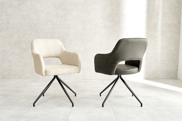 肘掛けが一体となった曲線が生み出すシルエットはダイニングやデスクなど多彩なシーンにフィットします。立ち座りがスムーズな回転チェアです。