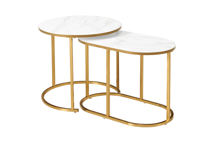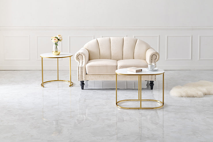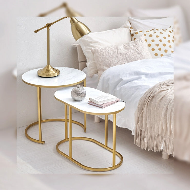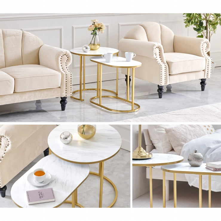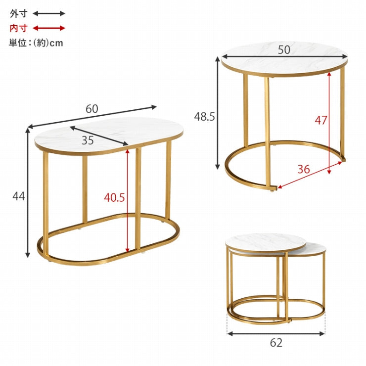 お部屋を華やかに彩る、エレガントな大理石調の天板とゴールドのフレームが特徴のネストテーブル。シチュエーションに合わせて様々なレイアウトが楽しめます。