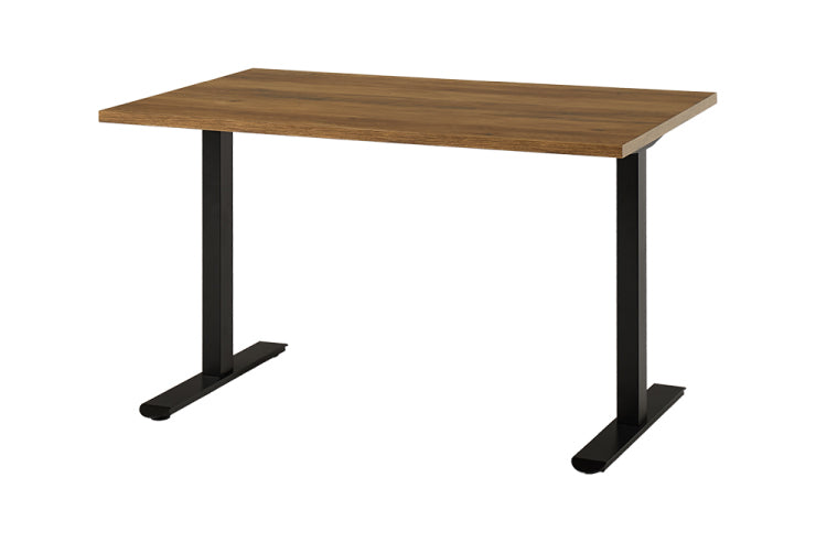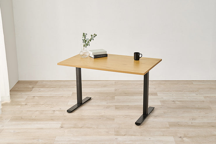 少し低めのシンプルT字脚デザインが特徴のダイニングテーブル。重厚感のある天板はお手入れがしやすく、天然木の雰囲気を再現しています。