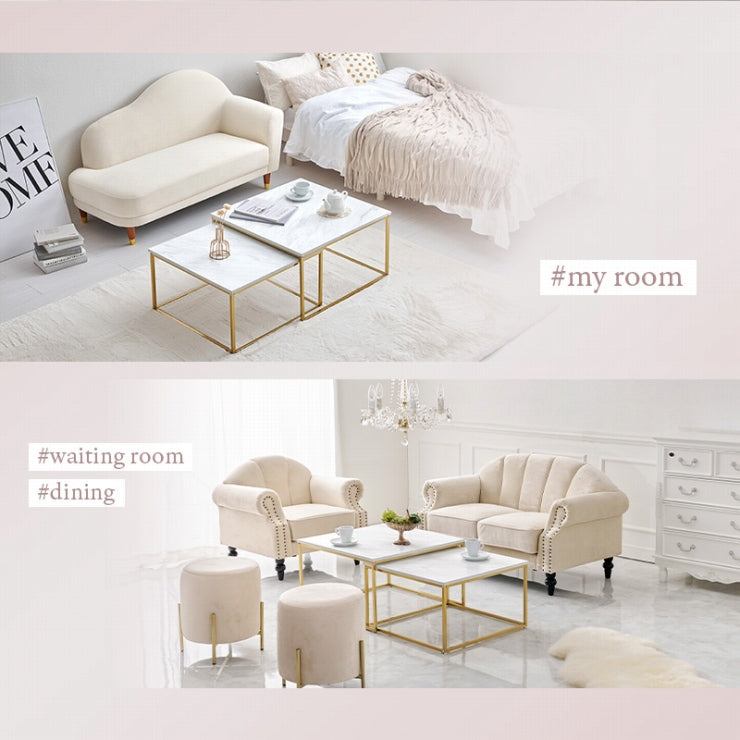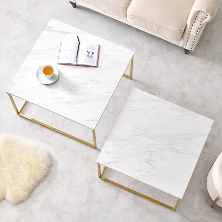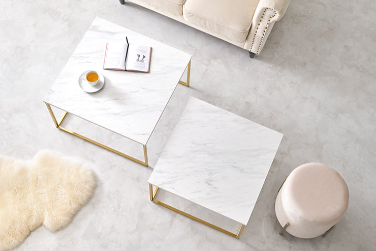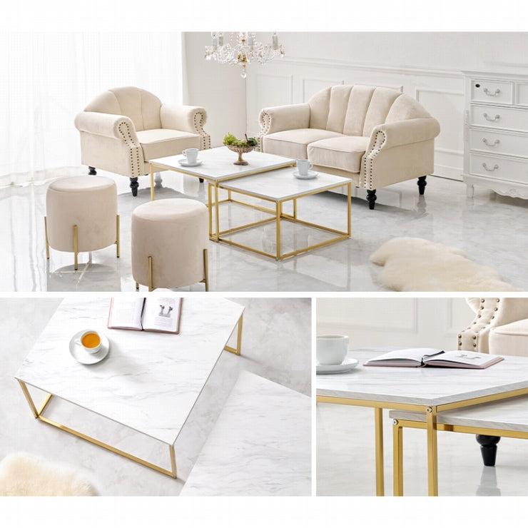 お部屋を華やかに彩る、エレガントな大理石調の天板とゴールドのフレームが特徴のネストテーブル。シチュエーションに合わせて様々なレイアウトが楽しめます。