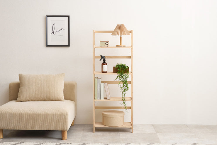 組立不要でサッと広げられるシンプルラック。天然木パイン材を使用しており、無塗装なので経年変化を楽しんだりDIYでアレンジしたりできます。