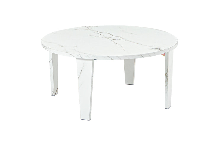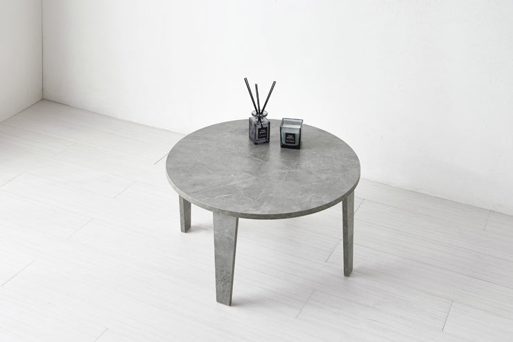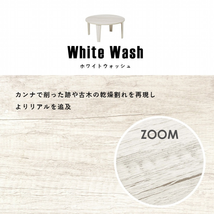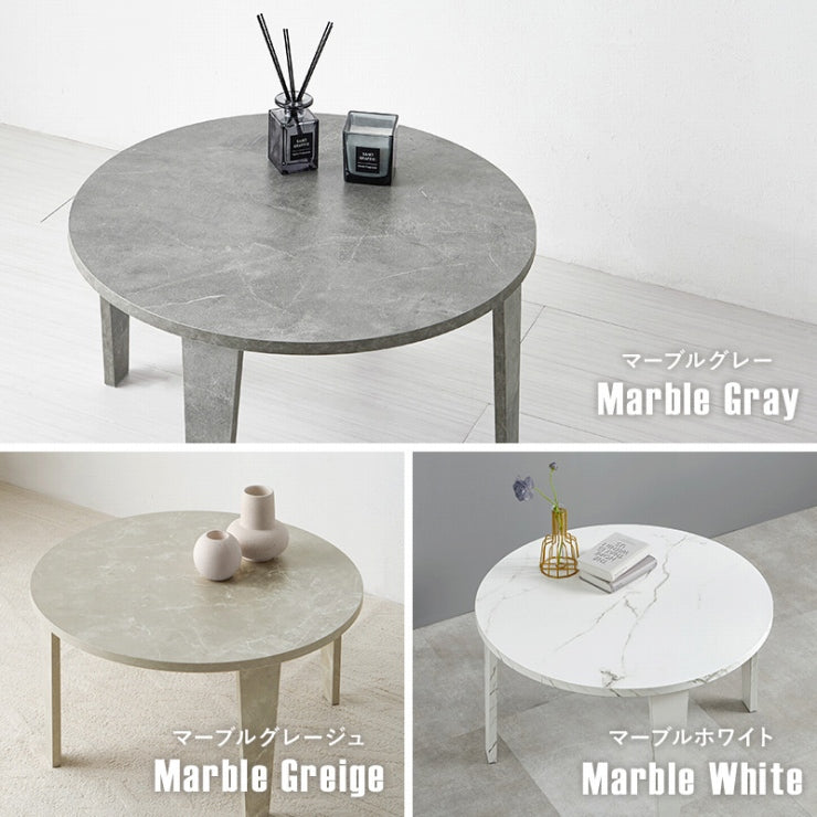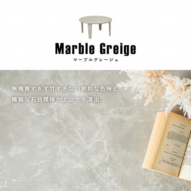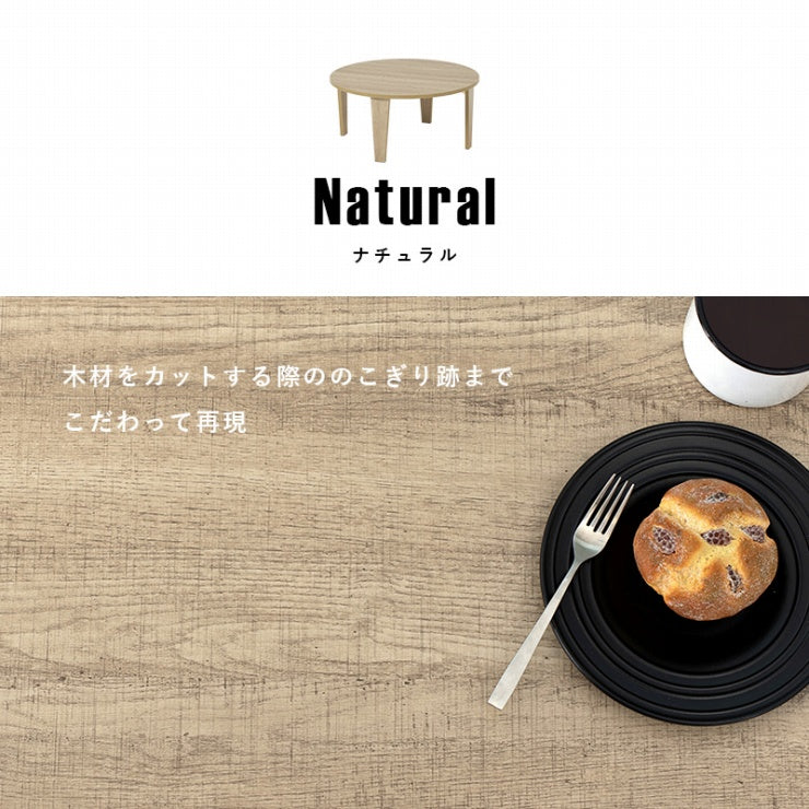 風合いの再現にこだわった円形テーブル。ヴィンテージの味わいがある木目調とモダンな印象の石目調から選べます。折りたたみ機能付き。