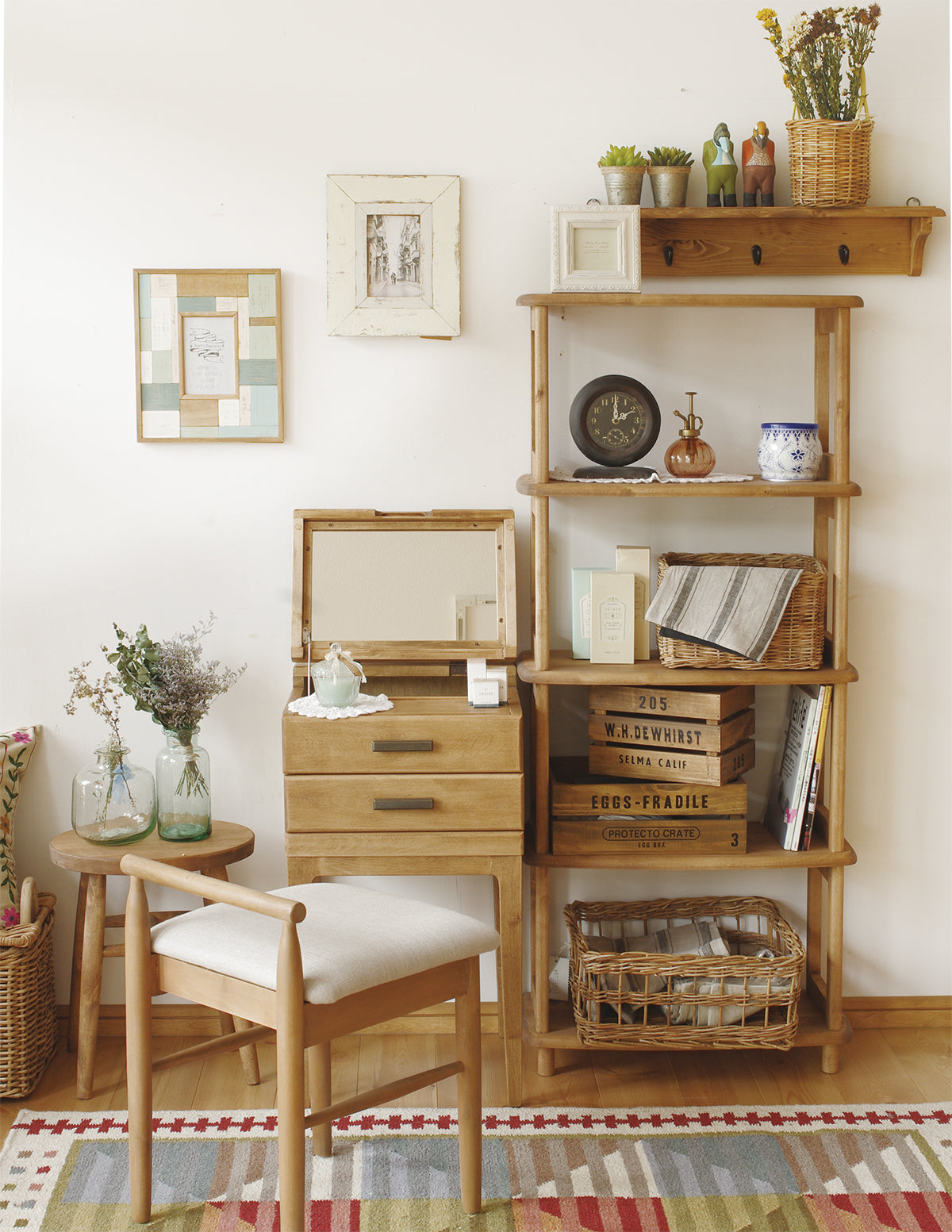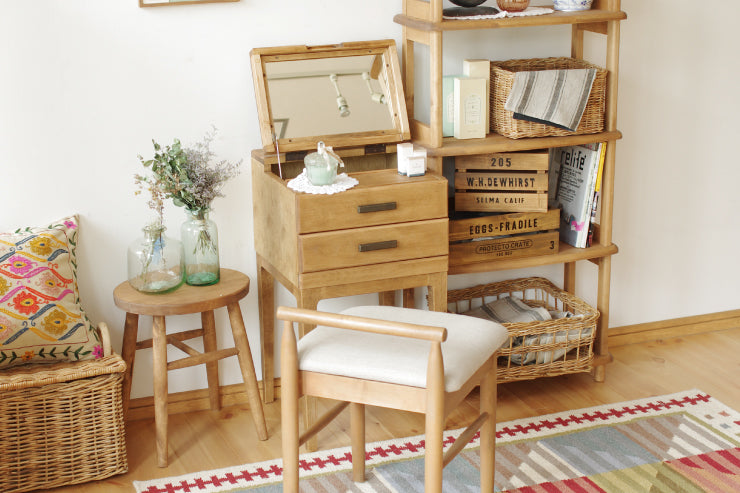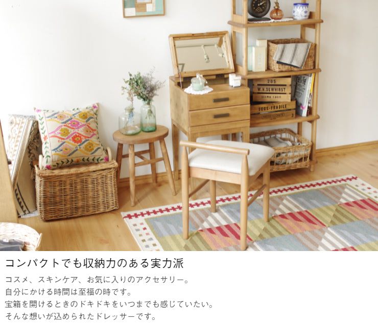 コスメ、スキンケア、お気に入りのアクセサリー。自分にかける時間は至福の時です。宝箱を開けるときのドキドキをいつまでも感じていたい。そんな想いが込められたドレッサーです。