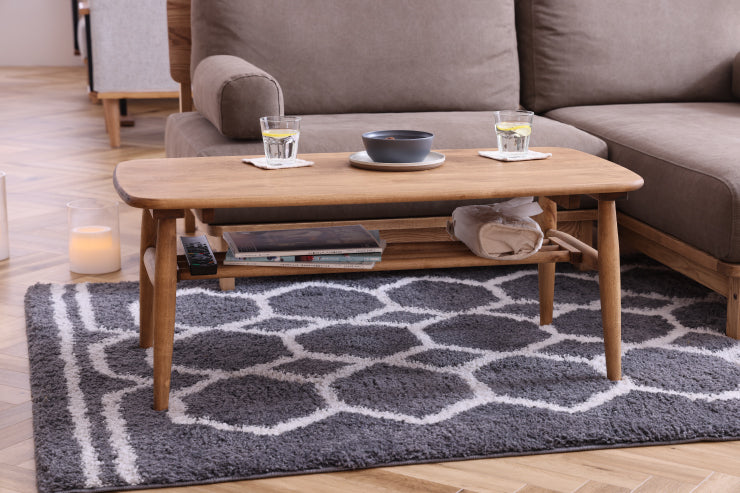 収納ができる便利なラック付きです。一人暮らしの方など、ダイニングがなくてもセンターテーブルで食事ができます。