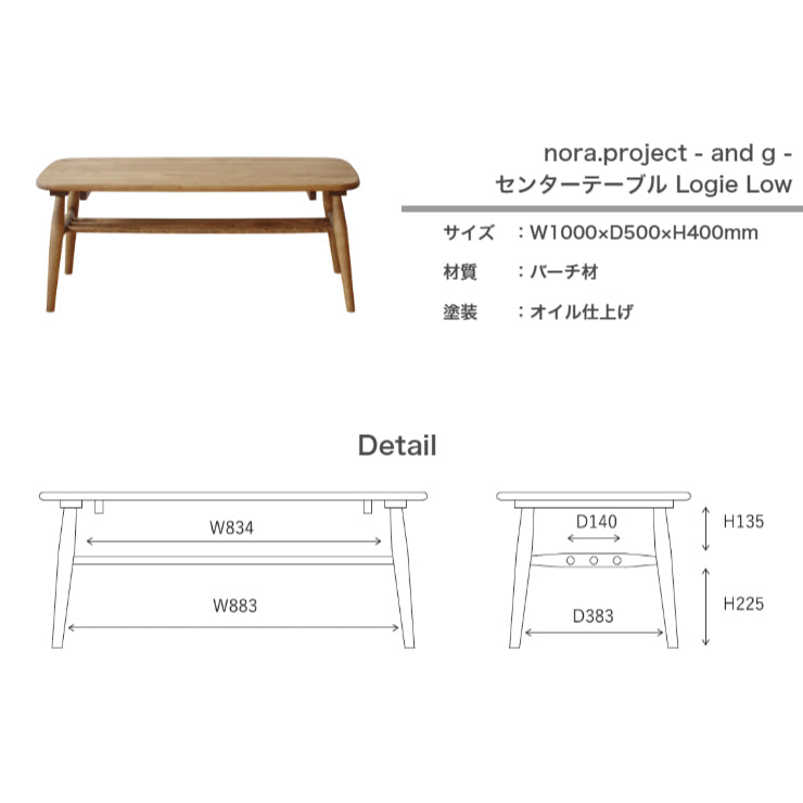 センターテーブル Logie Low ロジー 100cm×50cm 高さ40cm 木 ウッド nora project ノラプロジェクト and g アンジー リビングテーブル コーヒーテーブル ローテーブル シンプル ダイニング 家具 インテリア リビング 北欧 ナチュラル おしゃれ モダン