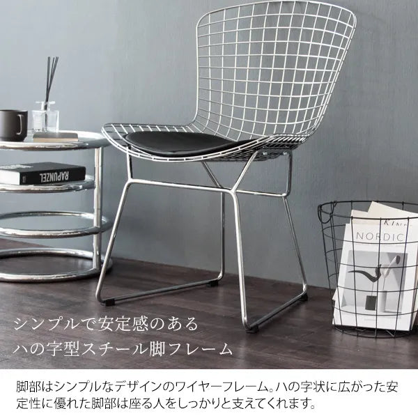 イームズやジョージ・ネルソンと並ぶ、ミッドセンチュリー期の代表的なデザイナー、ハリー・ベルトイアがデザインしたワイヤーチェアのリプロダクト品。