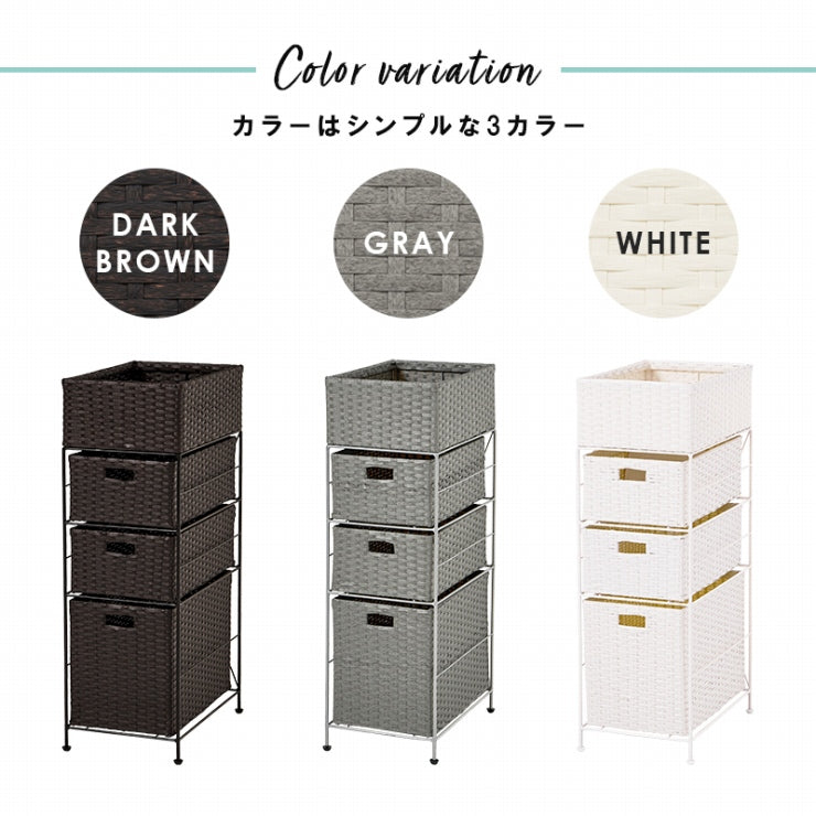 ランドリーラック RAN-2420 幅25.5cm 奥行き40.5cm 高さ80cm チェスト 引出し3杯 キャビネット ワゴン ランドリー パントリー収納 キッチン収納 隙間収納 防水 脱衣所 洗濯機横 ラタン調