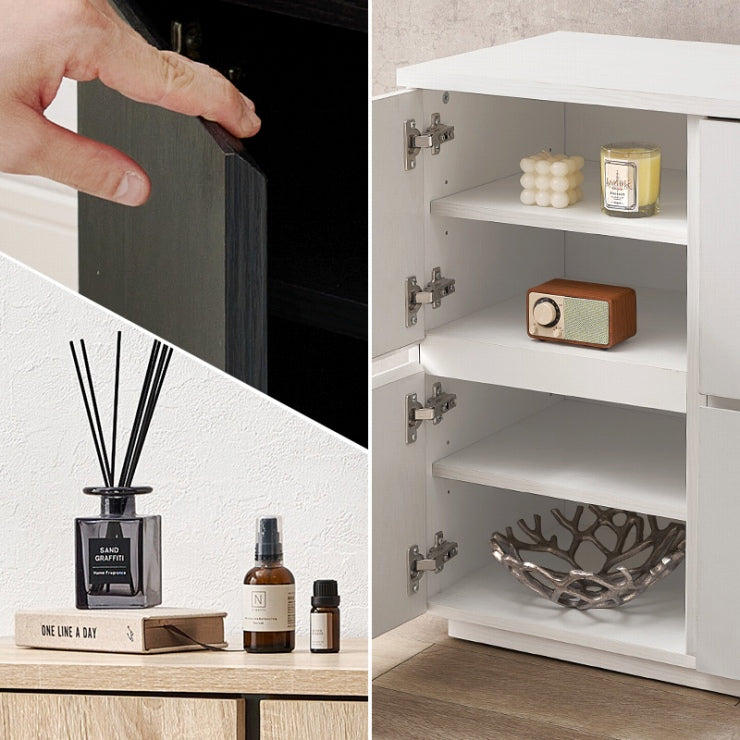 キャビネット RCC-1496 幅79cm 奥行き39cm 高さ71cm 木目調 収納家具 扉収納 収納スペース 可動棚 間仕切り ディスプレイラック 揺れ防止 箪笥 リビング ダイニング 玄関 寝室 ナチュラル ホワイト ダークブラウン フラット シンプル おしゃれ かわいい 韓国インテリア 北欧