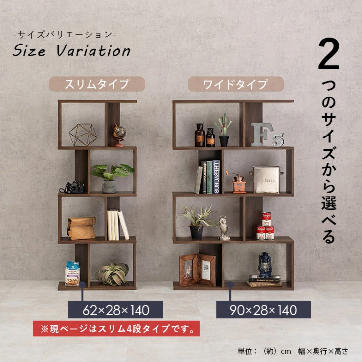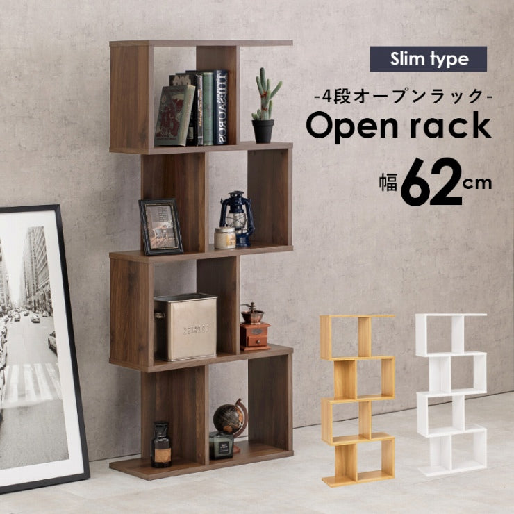 ディスプレイラック RCC-1601 幅62cm 奥行き28cm 高さ140cm スリム 4段タイプ オープンラック 壁面収納 ウォールシェルフ ラック パーテーション 玄関収納 本棚 マガジンラック 観葉植物 北欧