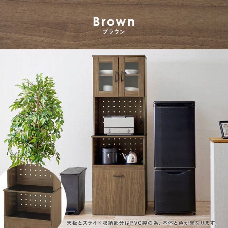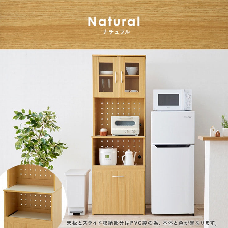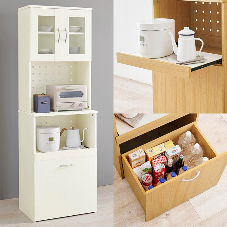 キッチンボード RCC-1903 幅59cm 奥行き43cm 高さ182cm ワゴンタイプ キッチンラック キッチンカウンター キッチン収納 すき間収納 スライド収納付き 炊飯器ラック レンジ台 トースターラック 収納 食器棚 扉付き棚 引出し 木目調 稼働棚 ストック キッチン 寝室 リビング 北欧
