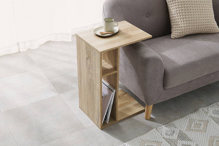 使うシーンに合わせてオープン収納付きのサイドテーブルからローテーブルに置き換え可能な2WAY仕様。木目調のシンプルデザインがお部屋になじみます。