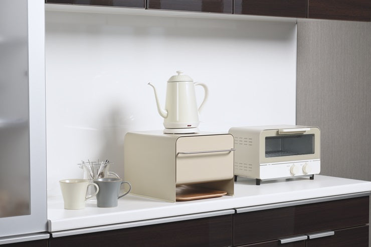天板はフラットになっており、トースターやケトルなどを置くことが可能です。天板の耐荷重は約5kgとなっており、非常に頑丈な設計です。