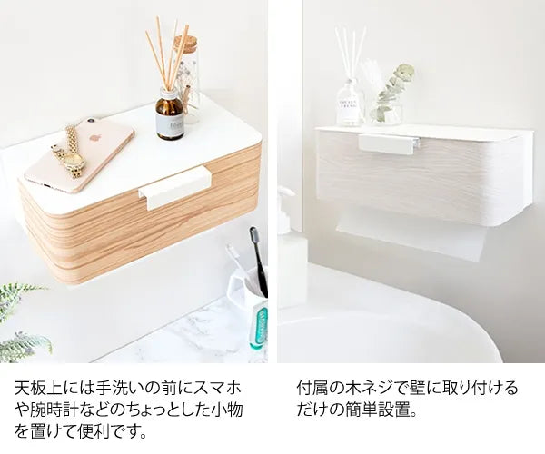 壁にネジ止めするだけの簡単設置で、省スペースに洗面所やキッチンで使用することができます。ホルダーに収納しておくことでペーパータオルをいつも清潔に保てます。大きく開くカバーで補充もラクラク。