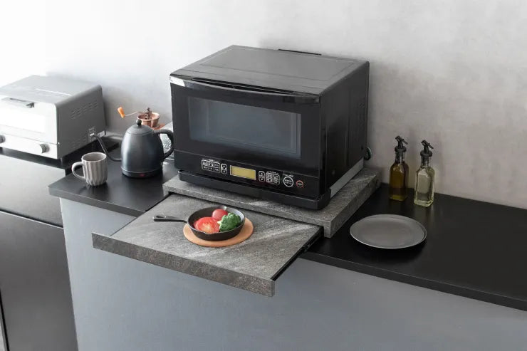 レンジや家電の下に置くだけで作業スペースが作れるレンジ下トレー『Avenir(アベニール)』。