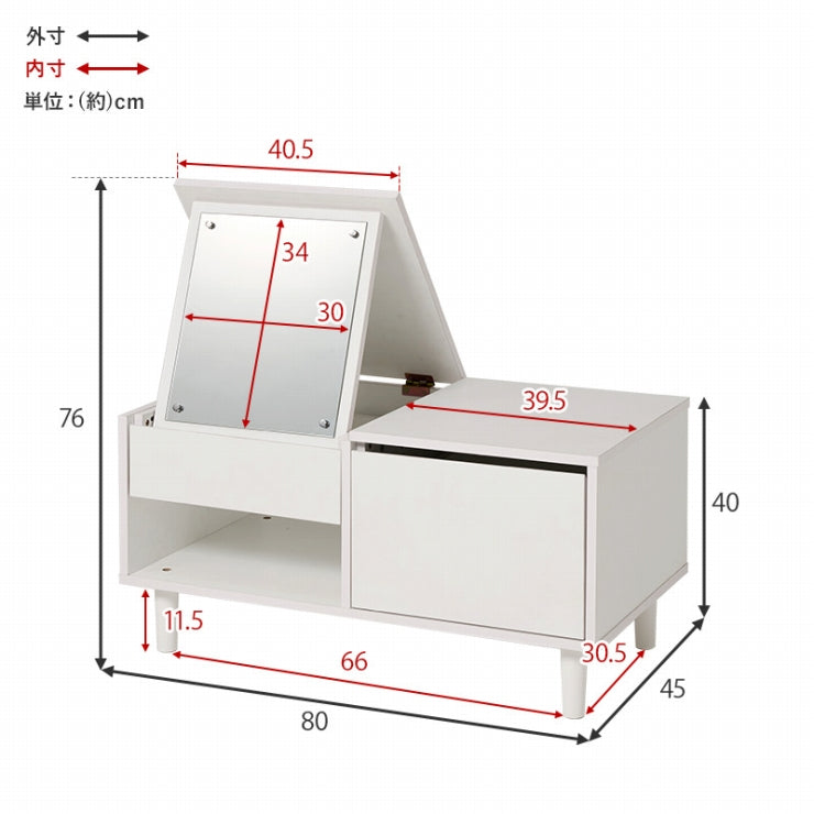 コスメテーブル VT-7200 幅80cm 奥行き45cm 高さ40cm