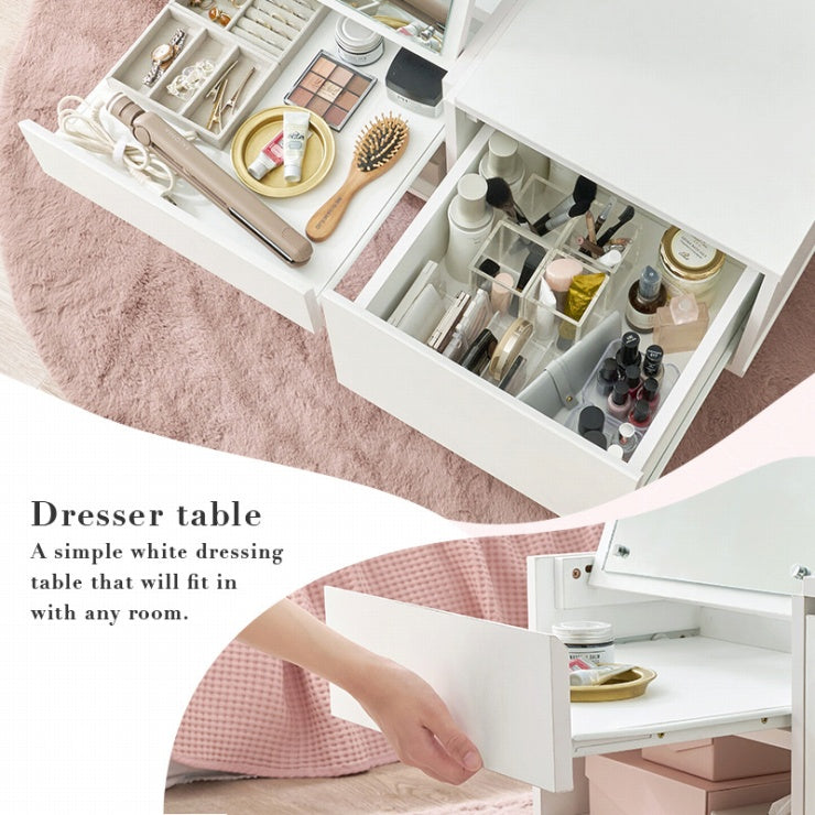 コスメテーブル VT-7200 幅80cm 奥行き45cm 高さ40cm ドレッサー 鏡台 メイクスペース センターテーブル デスク 作業台 大型ミラー スライド棚 化粧品 スキンケア用品 アクセサリー ヘアアイロン 小物収納 ホワイト 省スペース おしゃれ かわいい 韓国インテリア 北欧