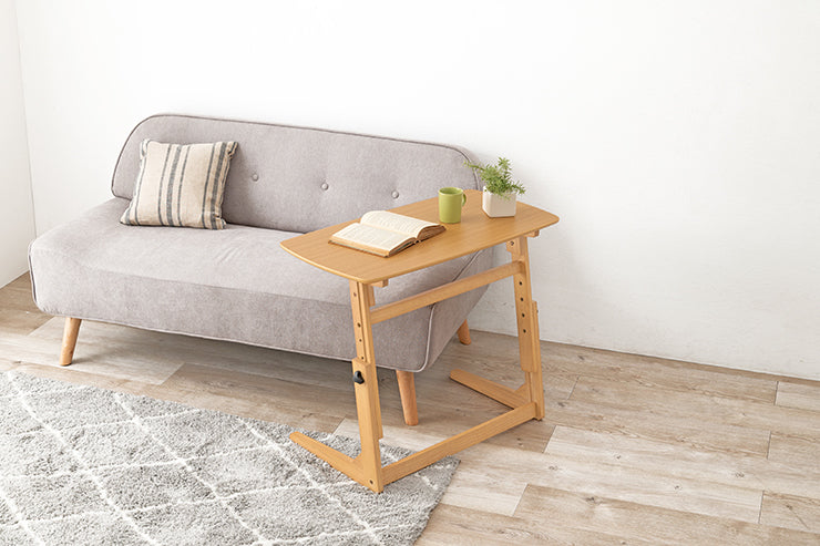高さが4段階に変えられるので、デスクからソファでの作業テーブルまで幅広く使えて便利。