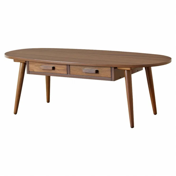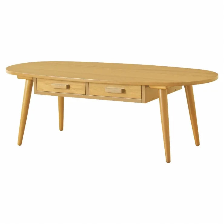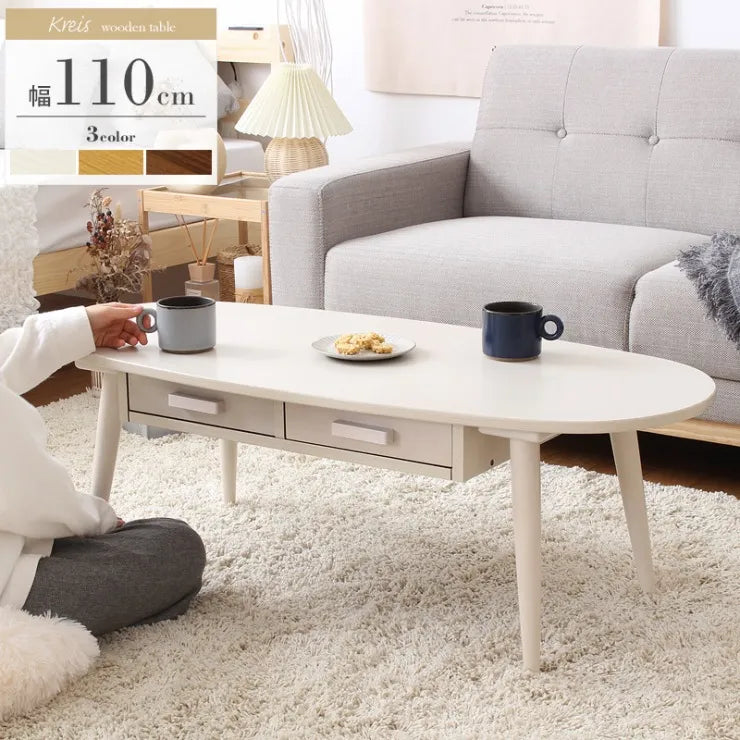 引出し付きリビングテーブル WT-34B 幅110cm 奥行き48cm 高さ37cm 天然木 ちゃぶ台 センターテーブル 木目調 円形テーブル 丸型 ウッド 机 コンパクト テーブル ローテーブル 楕円形テーブル オーバル型 収納 木 デスク リビング ダイニング おしゃれ かわいい 新生活 北欧