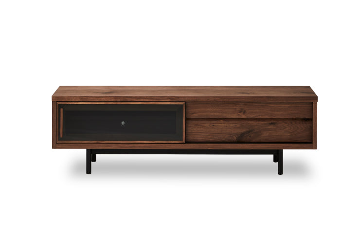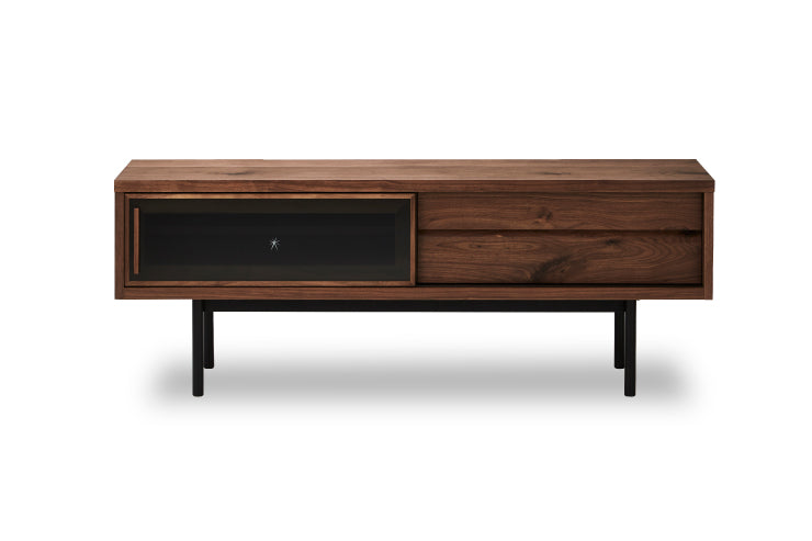 天然木 テレビボード YORO ヨウロウ スチール脚タイプ 日本製 150cm×44.5cm 高さ45cm ウォールナット ガラス 引き出し NIPPONAIRE ニッポネア テレビ台 キャビネット ダイニング 棚 家具 インテリア 収納 リビング 北欧 高級 低ホルムアルデヒド おしゃれ【開梱設置無料】