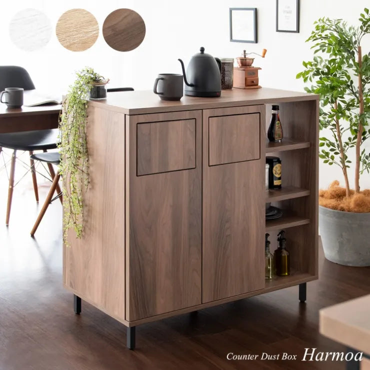 カウンターダストボックス Harmoa ハルモア DB-9040 幅90cm 奥行き40cm 高さ90cm ゴミ箱 キッチンカウンター 棚付き プッシュ式 収納 引出し ダストボックス 45L 大容量 キッチン収納 すき間収納 新生活 北欧