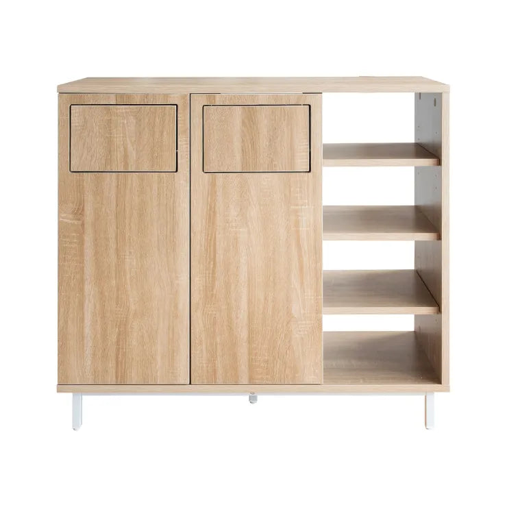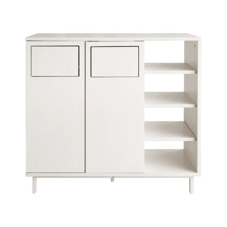 二連のゴミ箱に収納棚がついたカウンターダストボックス『Harmoa(ハルモア)』。