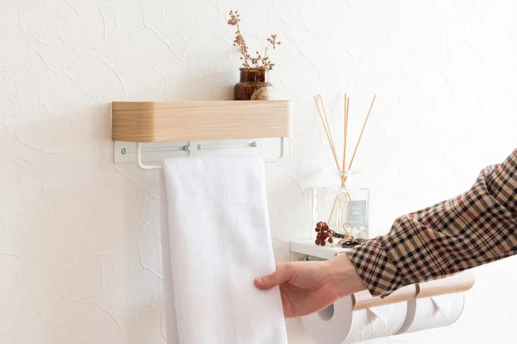 フェイスタオルやバスタオルを掛けてトイレやキッチンでお使いいただけます。ネジ4つで簡単設置が可能。