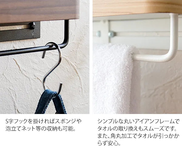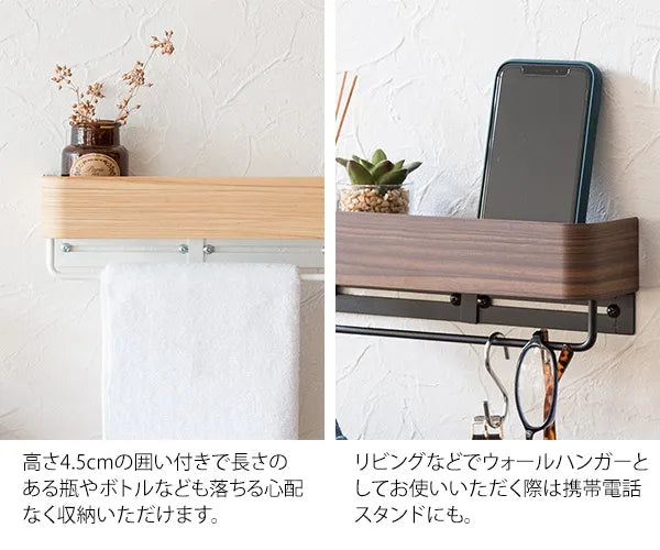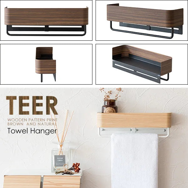 タオルハンガー TEER ティール HG-250M 幅25cm 奥行き7cm 高さ8cm トイレ収納 キッチン収納 タオルラック ハンガーバー 棚 ラック すき間収納 芳香剤 木目調 スチール アイアン 玄関収納 リビング 北欧