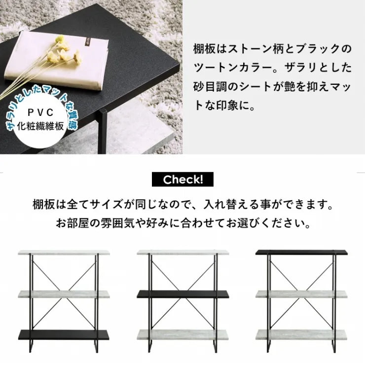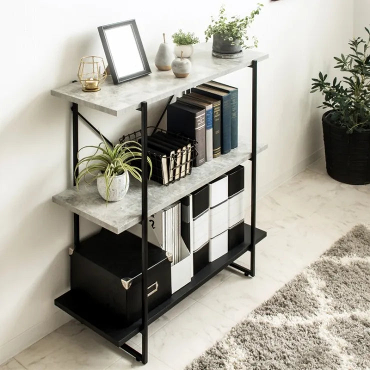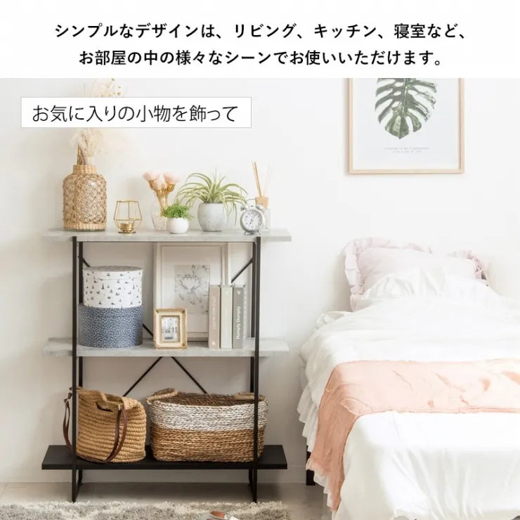 シェルフ IW-1330 3段 幅80cm 奥行き32.8cm 高さ88.5cm 石目調 ストーン調 スチール アイアン オープンラック 棚 ラック 玄関収納 ディスプレイラック 本棚 CDラック リビング ダイニング 収納棚 収納ラック シンプル モダン インダストリアル おしゃれ かわいい 北欧