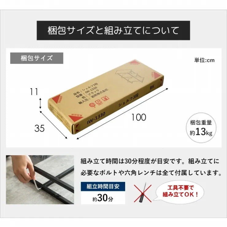 シェルフ IW-1330 3段 幅80cm 奥行き32.8cm 高さ88.5cm