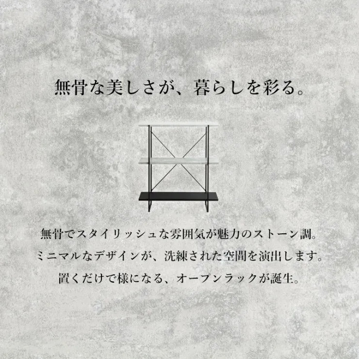 無骨で洗練。ストーン調デザインと省スペース収納が魅力のミニマルオープンラック。