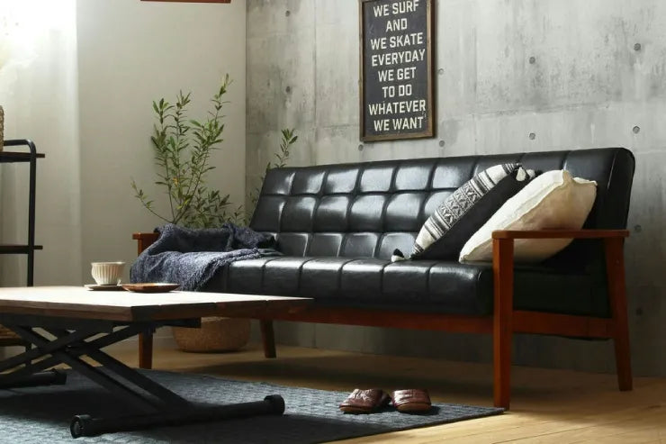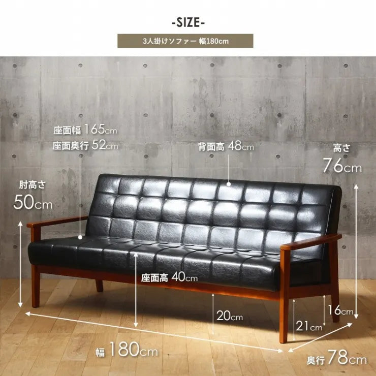 ロワールソファ IW-74 幅180cm 奥行き78cm 高さ76cm 座面高さ40cm 3人掛け 合成皮革 レザー PVC ウレタン 天然木 ソファ 椅子 チェア スリム コンパクト キルティング キルト リビング ダイニング おしゃれ かわいい シンプル ヴィンテージ カフェスタイル レトロ 北欧