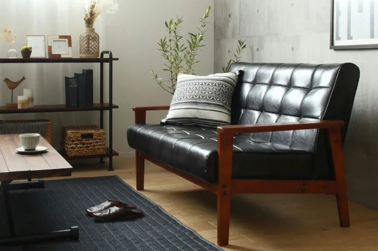 ロワールソファ IW-76 幅150cm 奥行き78cm 高さ76cm 座面高さ40cm 2.5人掛け 合成皮革 レザー PVC ウレタン 天然木 ソファ 椅子 チェア スリム コンパクト キルティング キルト リビング ダイニング おしゃれ かわいい シンプル ヴィンテージ カフェスタイル レトロ 北欧