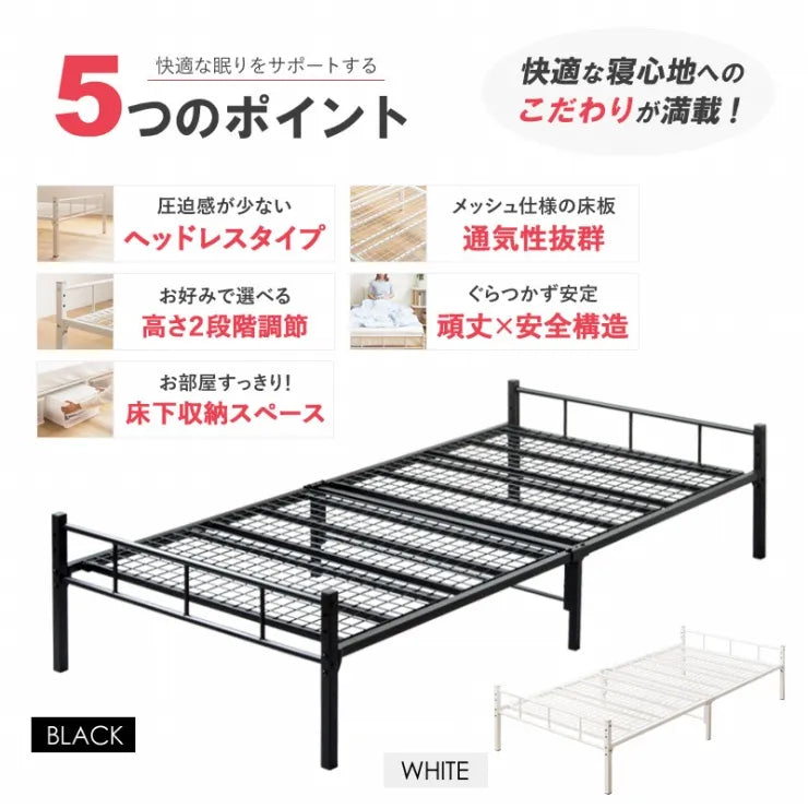 ヘッドレスパイプベッド IWB-1980 幅98cm 奥行き201.5cm 高さ42.6cm シングルベッド 高さ調節 シングルサイズ スリム コンパクト 寝室 寝具 スチールフレーム メッシュ 通気性 頑丈設計 ベッドフレーム ベッド下収納 床下収納 シンプル おしゃれ かわいい シンプル 北欧
